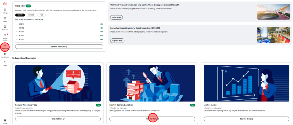 2. PropertyGuru for Business portal will open in a separate window. You can access Most in Demand Analysis under the ‘Demand’ category.