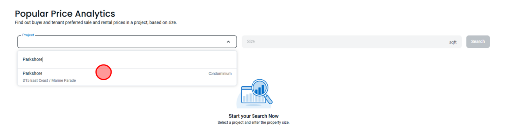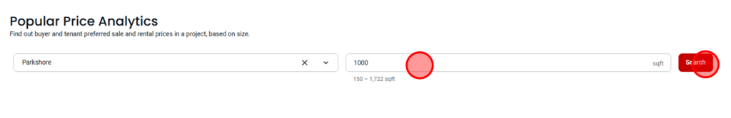 4. Next, input the size of the property you wish to analyse following the recommended range and hit “Search”.