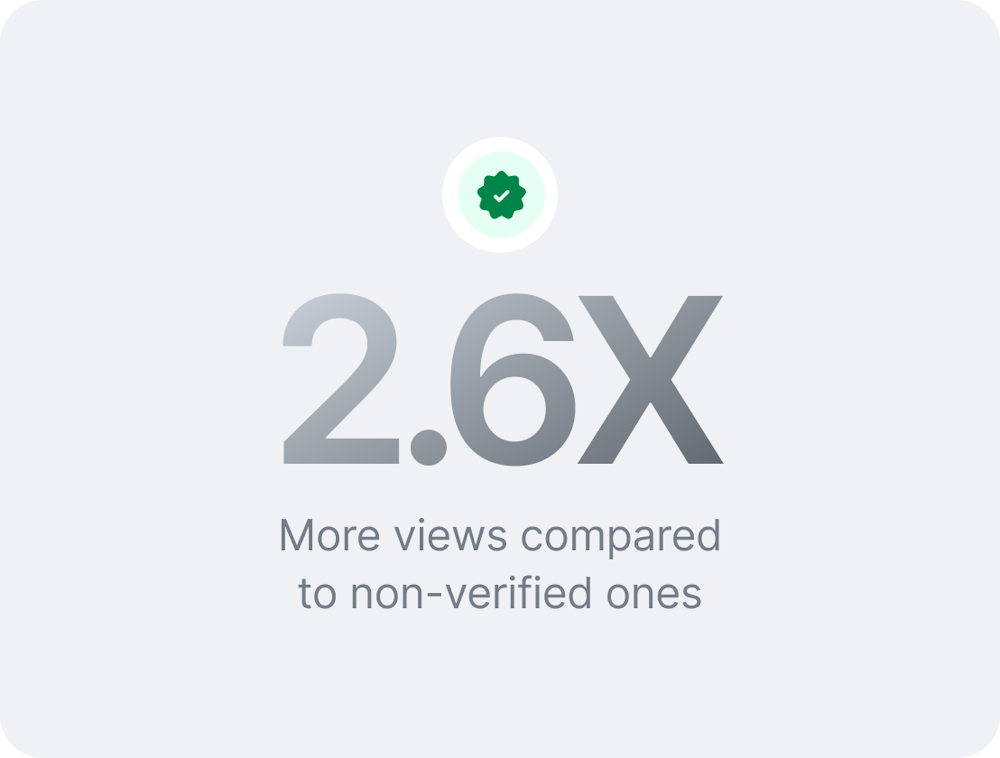 And it pays off. Verified Listings receive over 2.6x more views compared to non-verified ones. This shows that buyers are more likely to click when they trust what they see.